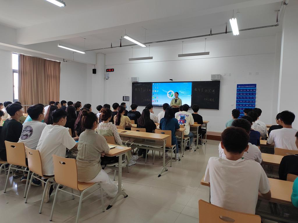 活动伊始,范玉以“诚信为本 助学筑梦”为题发表讲话,详细介绍了家庭经济困难员工认定、国家励志奖学金、国家助学金、生源地助学贷款、学费补偿、残疾员工学费减免等资助工作的各项细则和申请流程。随后,组织同学们集体观看了自创宣传短片《诚信助学,有爱校园》,使同学们更直观地了解资助工作中常见的问题。最后,通过现场提问环节,对同学们在资助政策方面存在的疑问进行了集中解答。