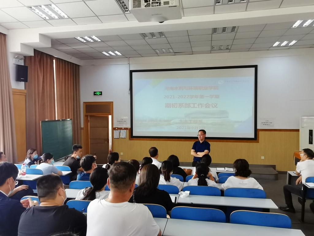 为明确新学期的工作重点和方向,推进疫情防控期间各项工作的顺利开展。9月7日下午,土木工程系在北教二阶和腾讯会议直播间同步开展期初系部教学工作会议,会议由系主任王玉振主持,全体专兼职教师参加。