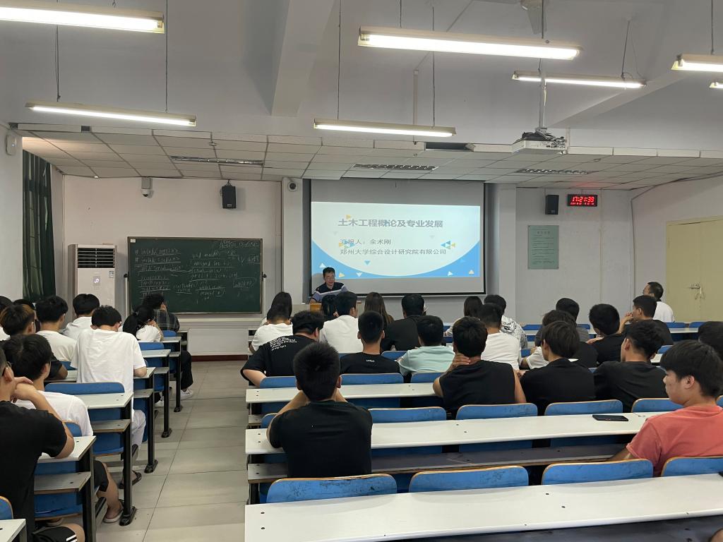 6月22日,土木工程系邀请郑州大学综合设计研究院有限公司高级工程师余术刚博士来公司开展学术讲座,讲座在南教105进行,土木工程系2019级建工、建工-国际、装配班全体在校生参加。