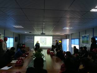 图4 武锡颖老师为员工讲解教学楼施工构造