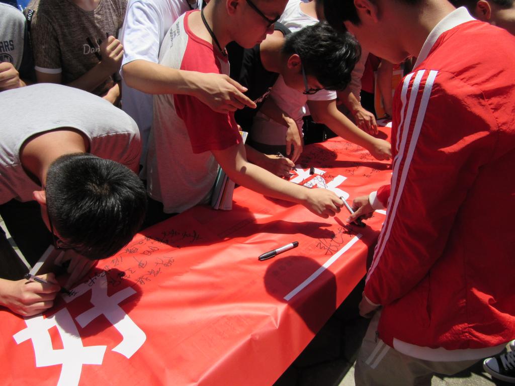 大会上,文书记希望同学们能够本着诚实守信的态度在考试中取得优异的成绩, 从而不断继承和发扬中华民族的优良传统,为自己的人生道路勾画出最美的线条。包主任强调,诚信是立国之本、立业之本,更是做人之根本,并祝同学们在本次期末考试中取得优异成绩。接下来,员工代表带领大家诚信宣誓,宣誓过后同学们纷纷在横幅上签名。