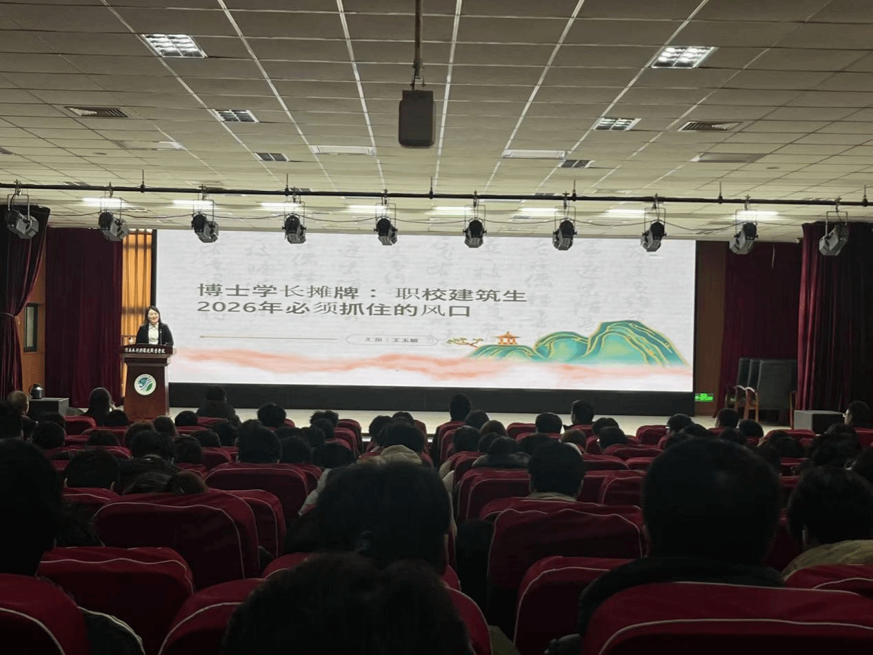 在主题讲座环节,王玉敏以“职校建筑生2026年必须抓住的风口”为题,结合自身多年行业实践,分析了建筑行业向绿色化、智能化转型的趋势,指出第四代住宅、智慧建造、城市更新等领域蕴含大量就业机会,鼓励员工夯实专业技能、主动适应行业变革。