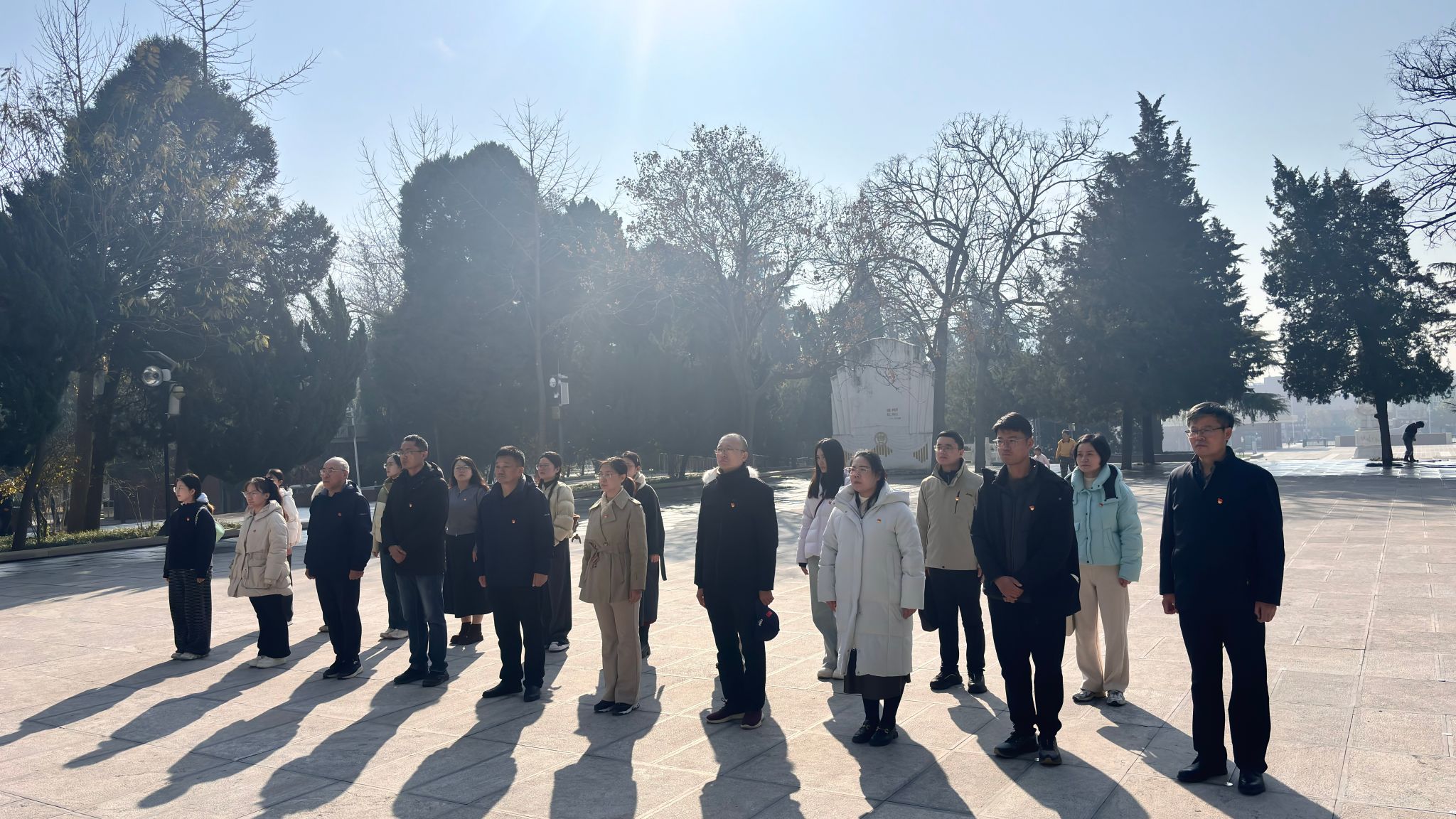 清晨7时30分,党员教师们集结出发,满怀崇敬奔赴兰考这片承载着红色记忆的土地。9时40分,活动首站来到焦裕禄墓,庄严肃穆的氛围中,党员教师们整齐列队,向焦裕禄同志敬献花篮,深切缅怀这位“县委书记的榜样”。在领誓人的带领下,全体党员举起右拳,重温入党誓词,铿锵有力的誓言回荡在墓区,既是对初心使命的坚守,更是对传承焦裕禄精神的庄严承诺。