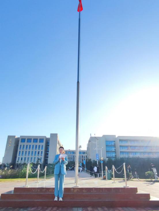 在雄壮的国歌声中,五星红旗冉冉升起,全体师生肃立,面向国旗行注目礼,高唱国歌。爱国主义氛围感染着全体师生。