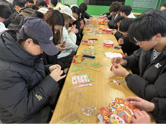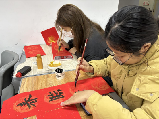 活动内容丰富,形式多样,包含写春联、剪窗花、猜灯谜、做花灯、乒乓汤圆DIY、趣味游戏和小型文艺表演等。写春联环节,同学们在活动现场泼墨挥毫,以墨香传递祝福,一幅幅寓意吉祥的春联跃然纸上;剪窗花环节,一把剪刀、一张红纸、一双巧手剪出了“中国结”、红灯笼等栩栩如生的新春元素作品;猜灯谜环节,同学们自己制作的花灯下悬挂着灯谜,大家在灯笼下或低头沉思、或热烈讨论、或欢呼雀跃,现场热闹非凡;乒乓汤圆DIY环节,大家在乒乓球上绘制自己喜欢的新春图案或写下新春祝福,制作完成后放入抽奖箱,在文艺表演的抽奖环节凭此领取小礼品;在文艺表演中,同学们带来的《大城小爱》、《新年快乐》等脍炙人口的歌曲和酷飒的舞蹈《Rollin'》,令大家回味无穷;“‘元’源不断加字乐”、“‘旦’愿成真添字欢”等趣味游戏让大家感受到了浓浓的节日氛围。