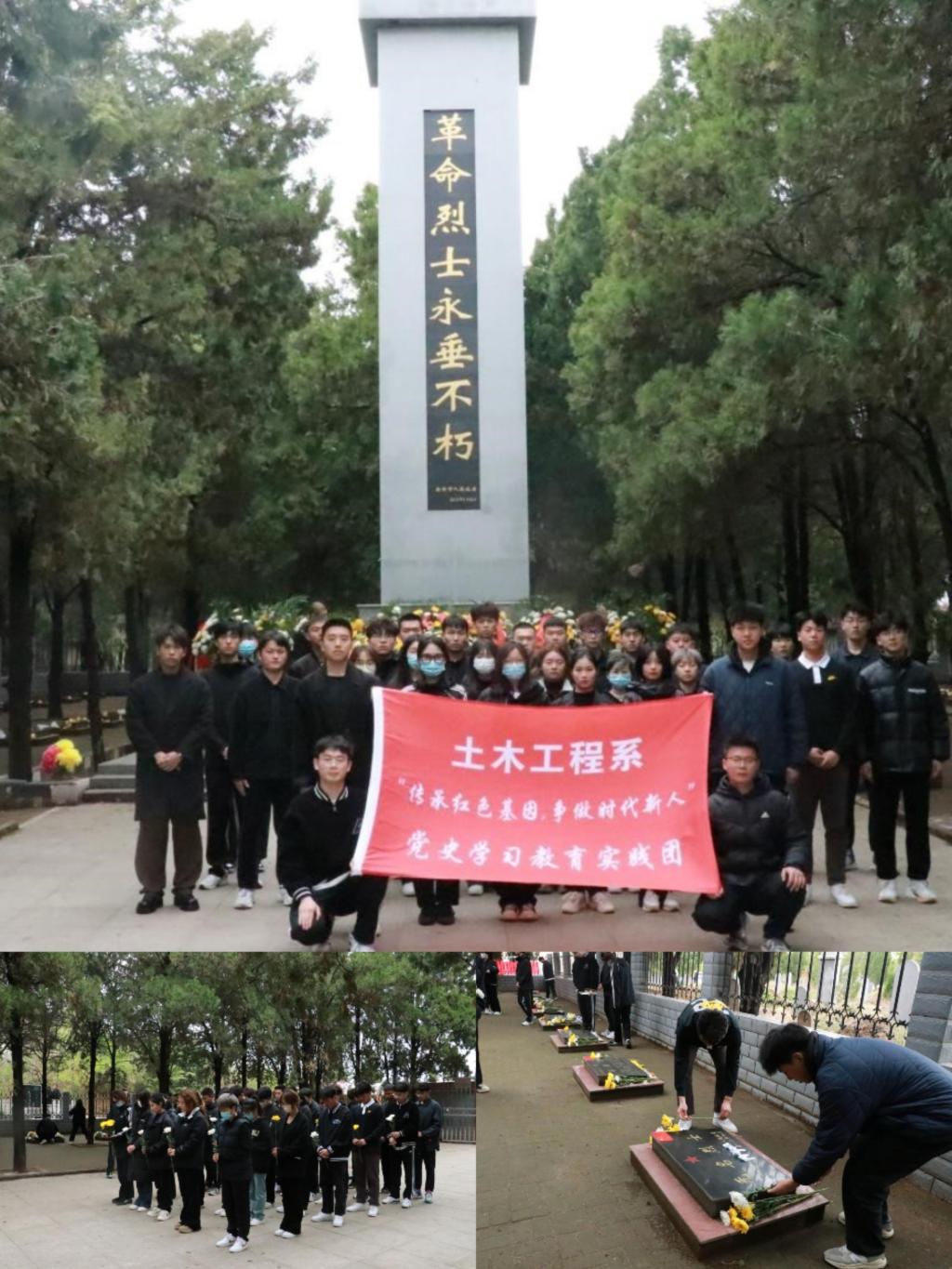 为引导员工铭记先烈功绩,赓续红色精神,4月4日,土木工程系组织40名员工赴新郑市烈士陵园开展“鲜花献英烈哀思祭忠魂”清明节祭扫活动。在“革命烈士永垂不朽”纪念碑前,同学们肃立默哀,敬献鲜花,缅怀先烈。