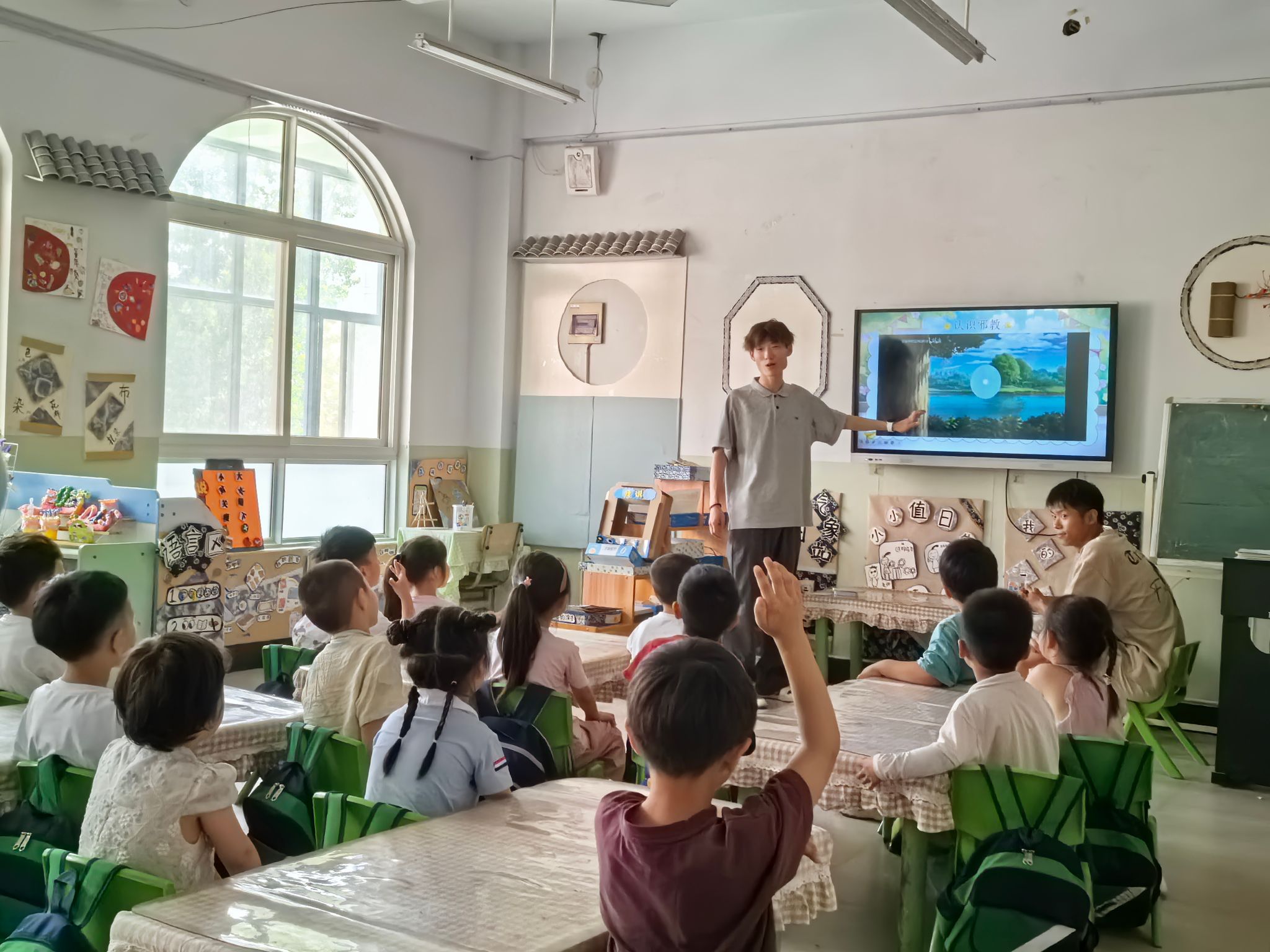 活动中,一部分志愿者走进郑州航空港区明港幼儿园,利用知识普及、趣味绕口令、绘画反邪图画等形式的活动,为孩子们种下防邪的“安全种子”。“邪教邪教,胡说八道……科学是正道,守法最重要”,朗朗上口的内容让反邪教知识深入人心“画出心中打怪兽的场景”环节将活动推向高潮小朋友们化身“超人”,用画笔描绘出自己打败邪教“怪兽”的画面,“崇尚科学”“自觉抵制邪教”“远离邪教”等元素在作品中频频出现,展现了大家对抵制邪教的坚定决心。