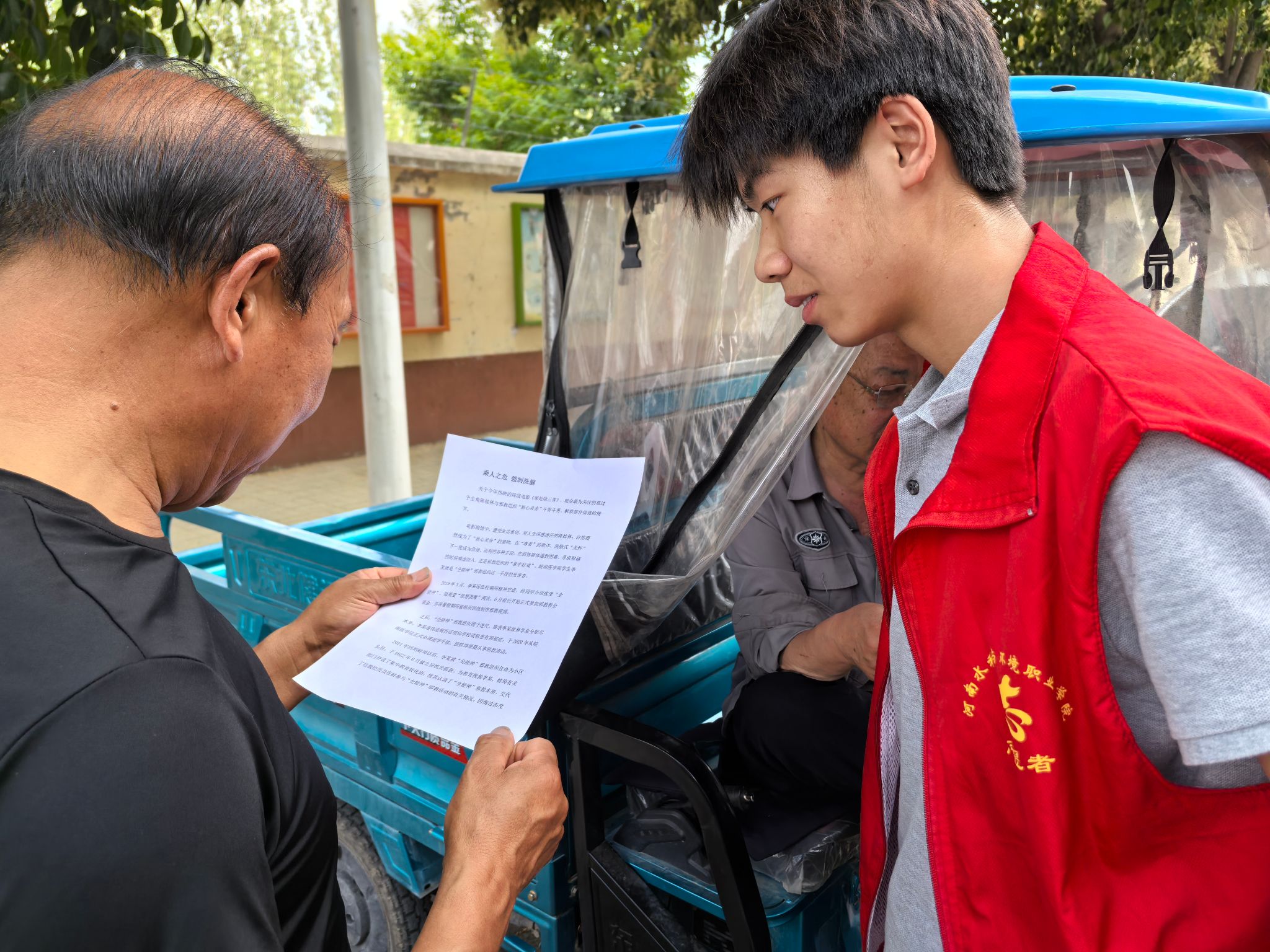 与此同时,另一部分志愿者在八千乡街道对附近居民和商铺进行反邪教宣传,给居民分发提前准备好的反邪教宣传页,并对居民进行宣讲,普及并宣传反邪教知识。