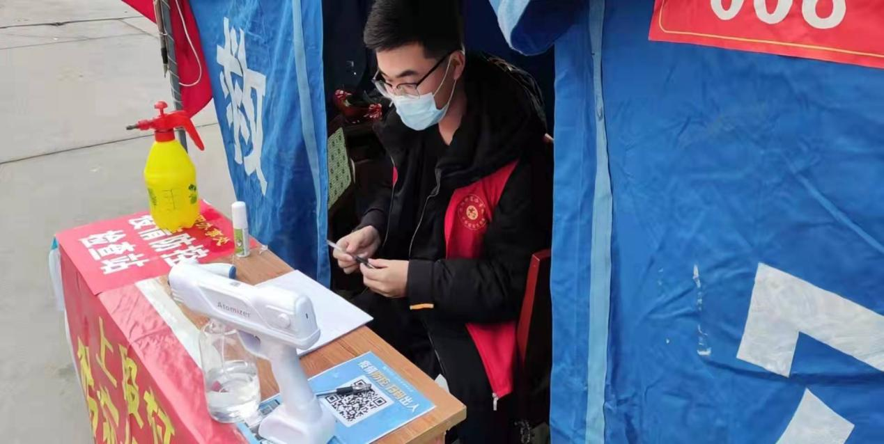 贺子康主要负责社区出入口的信息登记,协助志愿者队长宣传疫情防控有关知识,为社区居民服务。他表示作为新时代青年人应义不容辞的加入到疫情防控中,并以严谨的态度去完成各项工作,为抗击疫情献出一份微薄之力。