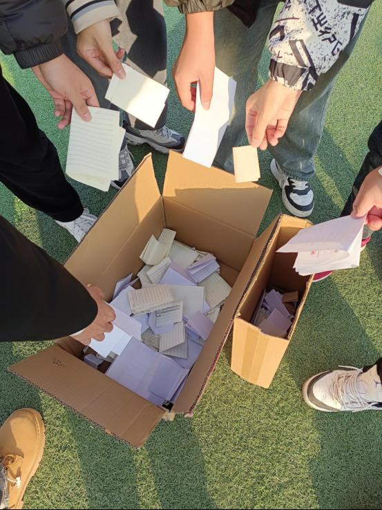 活动通过在操场搭建“解忧”和“树洞”两个诉说信箱的方式开展,同学们可以任选其一来诉说心事。在“解忧”信箱中,共收到48封匿名信件,大家在信纸上写下自己近期遇到的困难和问题,以此方式诉说心结,缓解压力;在“树洞”信箱中,共收到52封匿名信件,一张张信纸上写满了大家近期的新收获、感到开心的瞬间等想要分享的事情。活动最后,同学们从“树洞倾听”收件箱随机抽取信件进行匿名回复,将美好祝愿汇于笔尖,送上鼓励抚慰和建议。