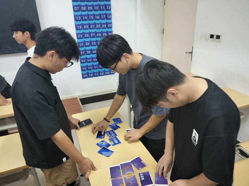 活动还设置了交流互动环节,在“玩转‘反诈’拼图”活动中,大家有条不紊地将形色各异的网络安全主题海报碎片重新拼成完整的图案;在“颤抖吧!骗子”趣味小游戏环节,各小组成员发挥团队协作精神,依次将乒乓球吹进最后一个杯子内。