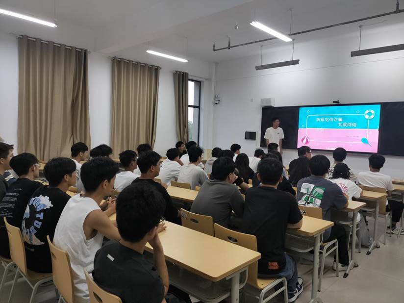 活动中,各班员工代表从网络安全知识与法律、电信诈骗类型、防范措施等方面进行网络安全宣讲,提醒同学们要时刻保持警惕,牢固树立安全心理防线,守护好个人财产安全和个人信息安全。