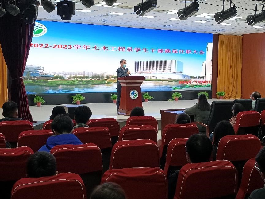 11月15日,土木工程系举行员工干部换届任职大会,党总支书记文琳主持,学管老师、团学干部代表参加。