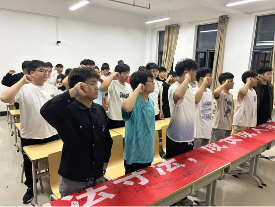 “知法于心,守法于行”集体宣誓仪式中,全体同学高举右拳庄严宣誓,并在宣誓活动横幅上签名,时刻牢记庄严承诺,以奋进姿态诠释法律担当。