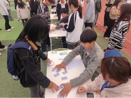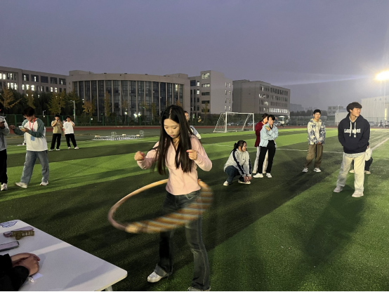 活动设置了“从新配对”、“一元钱,两元钱”、“计时呼啦圈”三个项目。“从新配对”项目要求员工需在一分钟的时间内,将桌上反面朝上放置的纸牌两两翻面,直至匹配到相同的图案才可得分。现场氛围在同学们的一句句加油呐喊声中迅速破冰。“一元钱,两元钱”项目在主持人的口令下,代表一元钱的男生代表和两元钱的女生迅速抱团组成相应的数字,活动充分考验了同学们的反应能力和团队合作能力。“计时呼啦圈”项目规定参赛同学于指定地点在一分钟内通过腰部力量转动呼啦圈,比赛以转动的圈数为依据进行排名。三个项目结束后,根据同学们的最终积分评选出获奖选手,并给予相应的学分奖励。