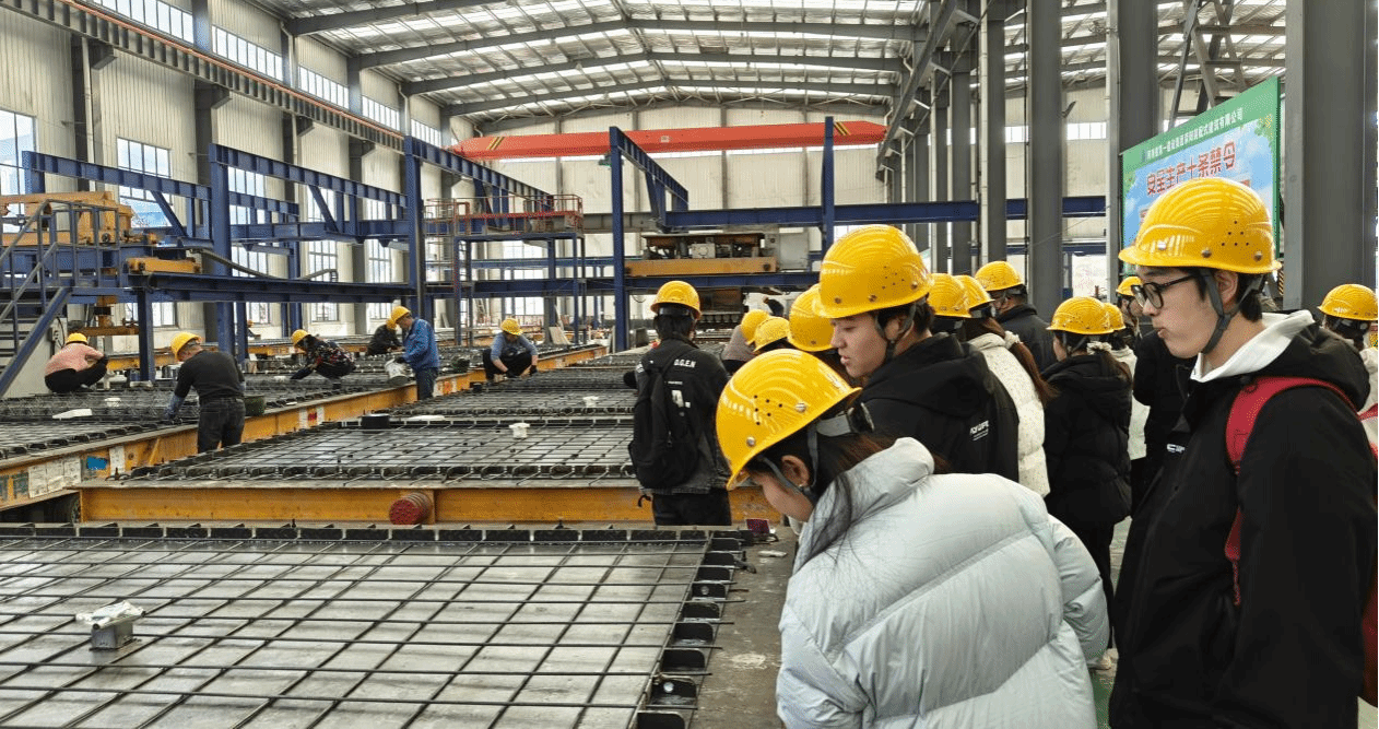 在随后的实践环节中,企业安排技术人员带领师生深入生产车间一线,实地观摩预制构件的生产流水线,详细讲解从模具组装、钢筋布置、混凝土浇筑、养护到成品出厂的全过程。员工们通过近距离接触生产设备、了解工艺流程、与企业技术人员交流,对装配式构件的标准化生产与质量控制有了更直观和深刻的理解。