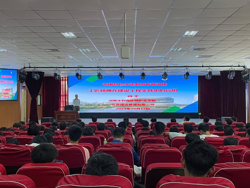 10月18日,土木工程系邀请元森建设管理有限公司阎平工程师开展“工匠精神在建设工程实践中的应用”专题讲座,系中国特色学徒制班全体员工参加。
