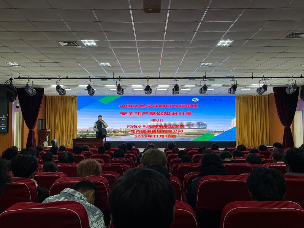11月10日,土木工程系邀请2010级优秀员工、元森建设管理有限公司工程部经理申川回校开展“安全生产基础知识分享”专题讲座,系中国特色学徒制班全体员工参加。
