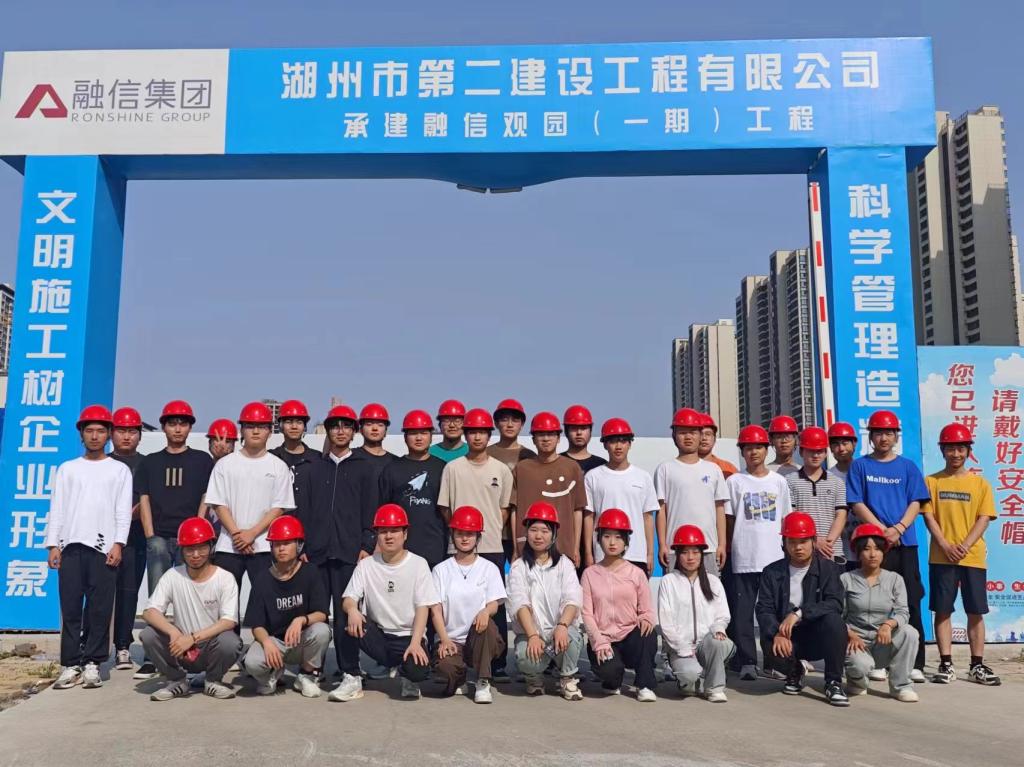 在湖州市第二建设工程有限公司融信观园项目,同学们跟随项目经理和施工员,深入了解了施工图纸解读、施工方案制定和施工现场协调管理等内容,重点学习了现代建筑施工技术和管理模式。