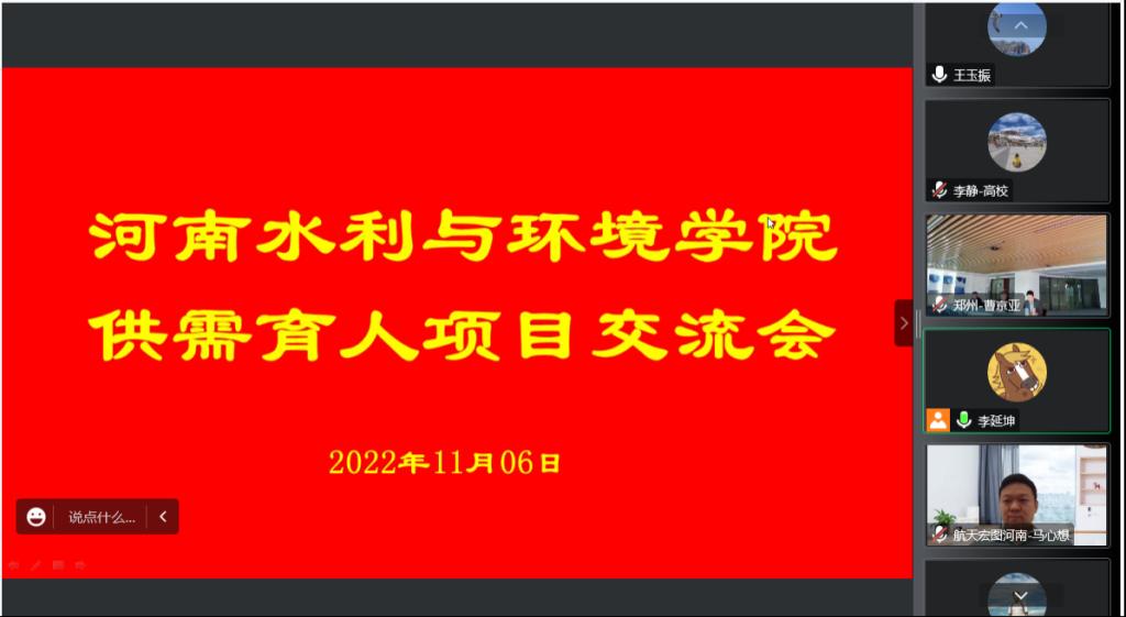 为进一步做好教育部第二期供需对接就业育人项目申报工作,推进产教融合育人,拓展员工就业渠道,11月6日,公司与航天宏图信息技术股份有限公司就供需对接就业育人项目举行视频交流会。副董事长张凌杰、土木工程系主任王玉振及项目申报有关教师,航天宏图信息技术股份有限公司河南分公司总经理郝凤森、人力资源总监王斌、高校合作部副总监李静及项目有关负责人参加。