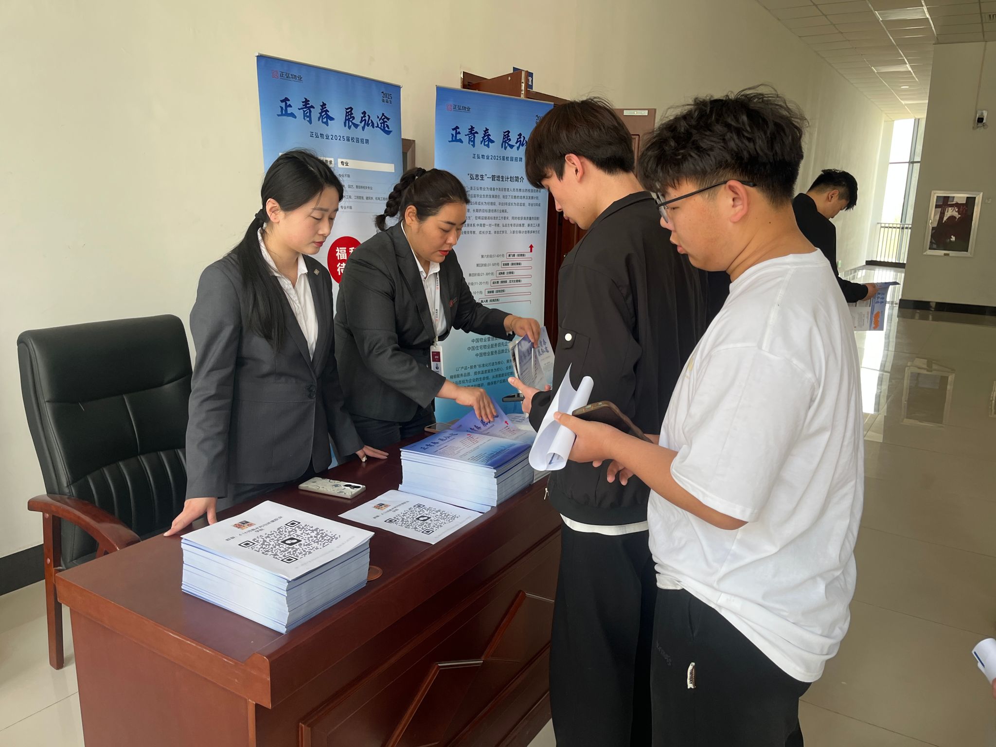 宣讲会上,正弘物业人事专员通过企业宣传片、PPT展示等方式,全面介绍了公司的发展概况、行业优势及人才培养体系,重点解读了“弘志生”管培生计划。此外,还针对本次招聘的工程管理(土木方向)、客服前台等岗位的职责要求、薪资福利及晋升通道作了详细说明。